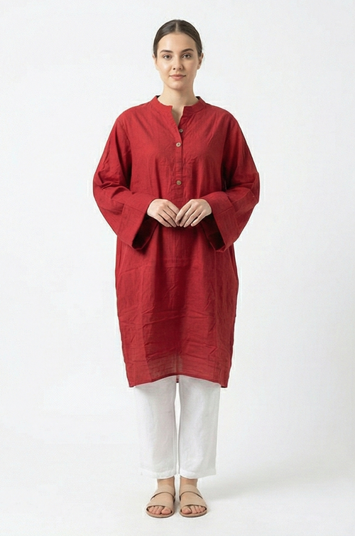 AlKaram dark red Cotton Kurti