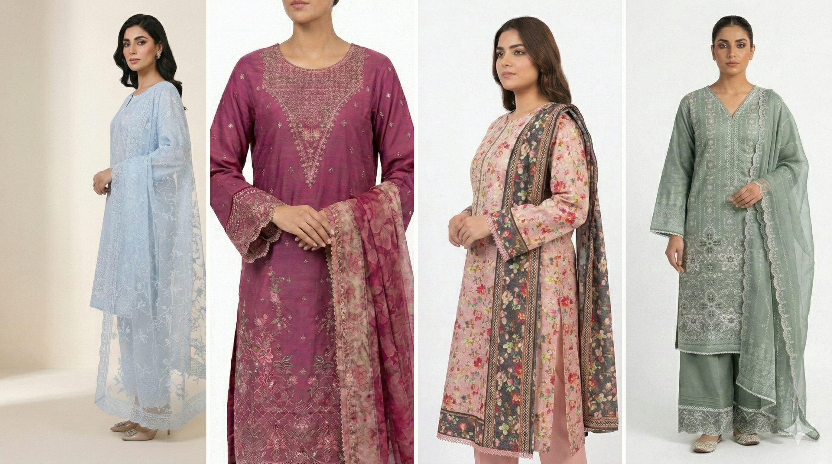 Zaraiz Premium embroidered white and light blue 3pcs